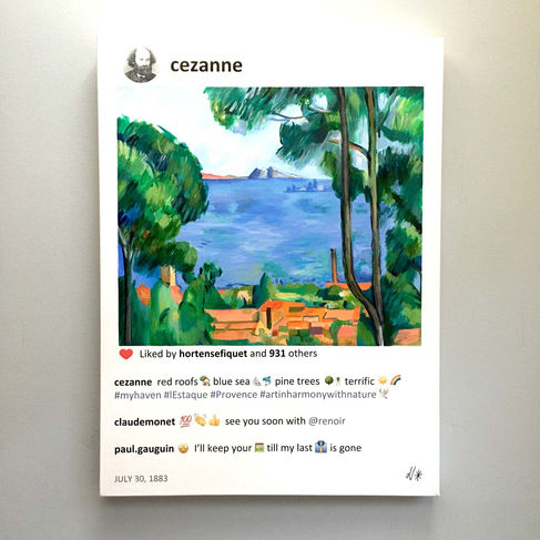 Laurence de Valmy is a French American and lives in Philadelphia, USA. She invites us to reflect on the links between artists through times and the relationship between Art and today’s social media. Inspired by the personal stories of artists, she revisits Art History through anachronic Instagram of the past. In her POST paintings, she combines iconic artworks skillfully appropriated with imagined conversations, historically accurate yet humorous. By telling the stories behind these artworks, the artist leads us to consider them with a new eye.